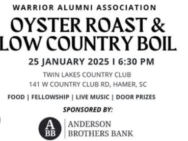 You’re Invited! Join us for the Warrior Alumni Association Oyster Roast on January 25th at 6:30PM!
